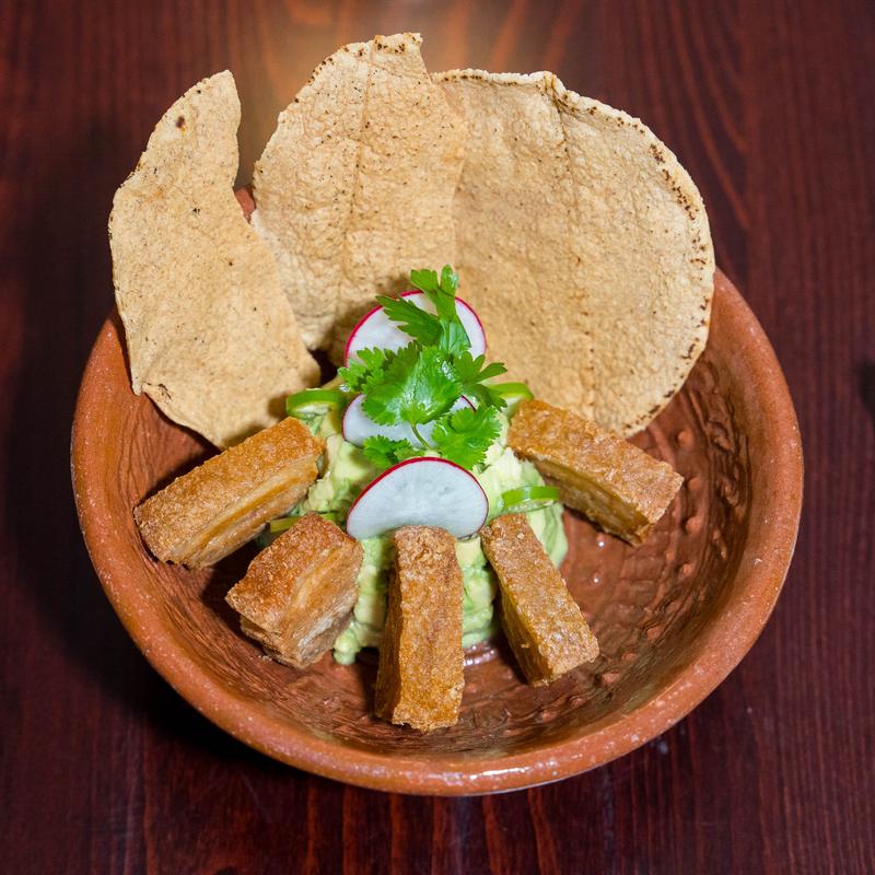 Avocado, lime, jalapeño, crispy pork chicharrón. Served with tostadas
