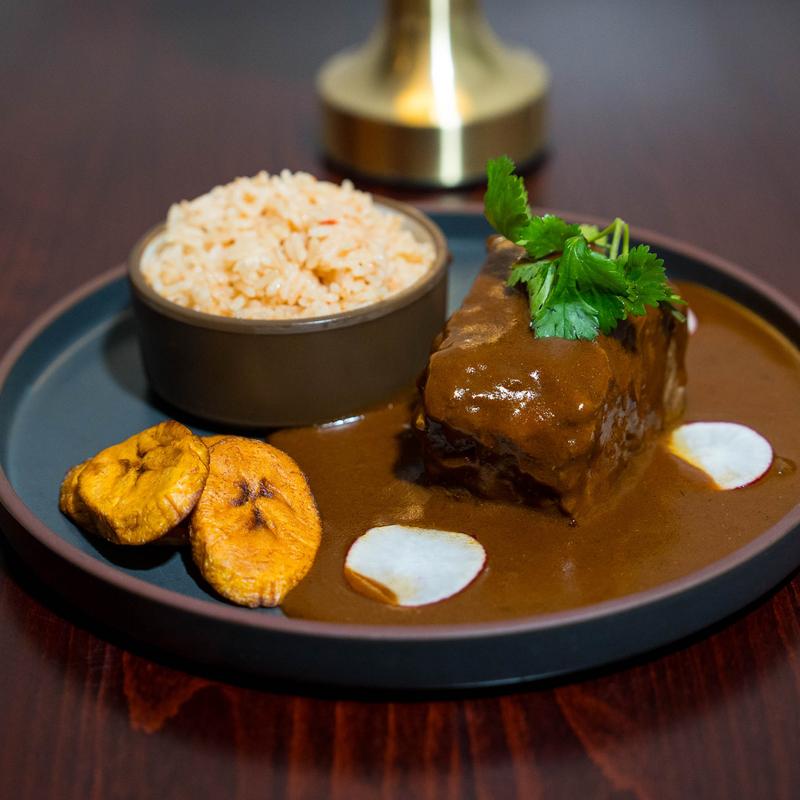 Fried plantains stuffed with Oaxaca cheese, chile de árbol yogurt